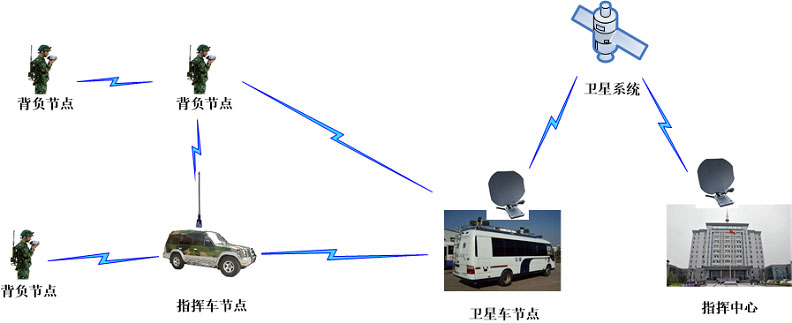 4) 真正的“无中心、自组网”系统:所有节点关系对等,都可作为信息采集节点(发送点)、中继节点(接力传输点)或信息输出节点(接收点)。不需进行任何设备参数更改,即可实现指挥节点位置变更。